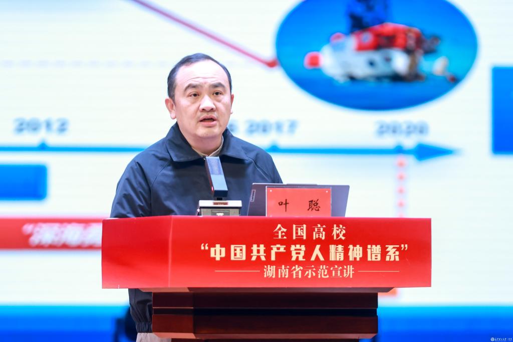 12月5日上午,全国高校“中国共产党人精神谱系”湖南省示范宣讲在我校举行。本次活动以“立报国强国大志向 做挺膺担当奋斗者”为主题,由教育部思想政治工作司指导,中共湖南省委教育工委、湖南省教育厅主办。活动主会场设在我校云塘校区大会堂,全省各高校设立分会场,6万余名师生通过湖南省教育系统视频会议系统同步实时收看。