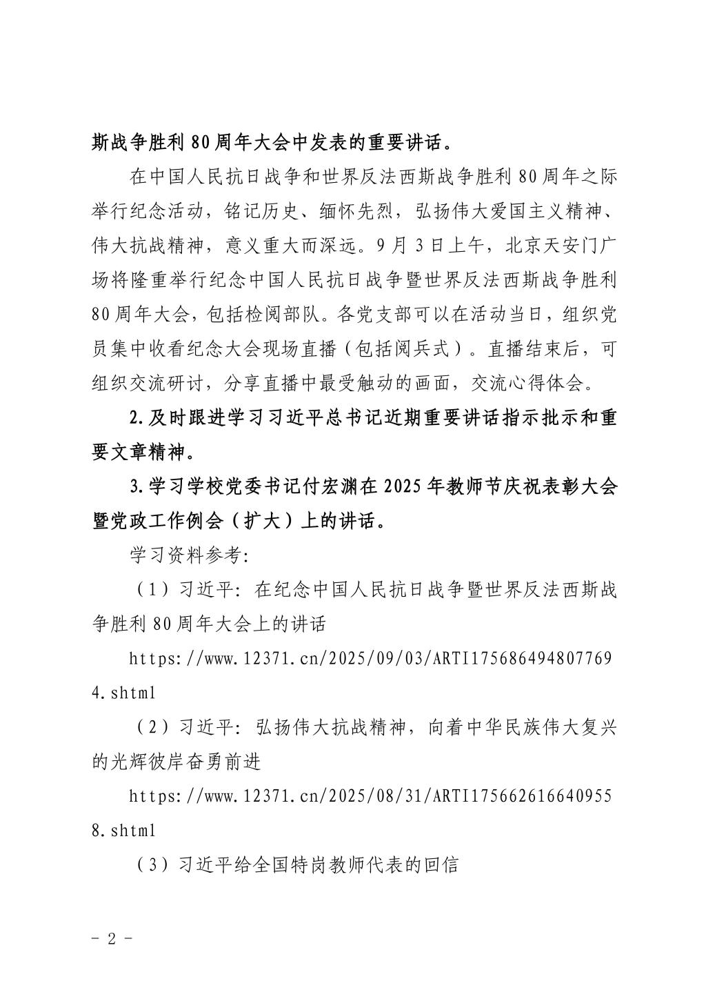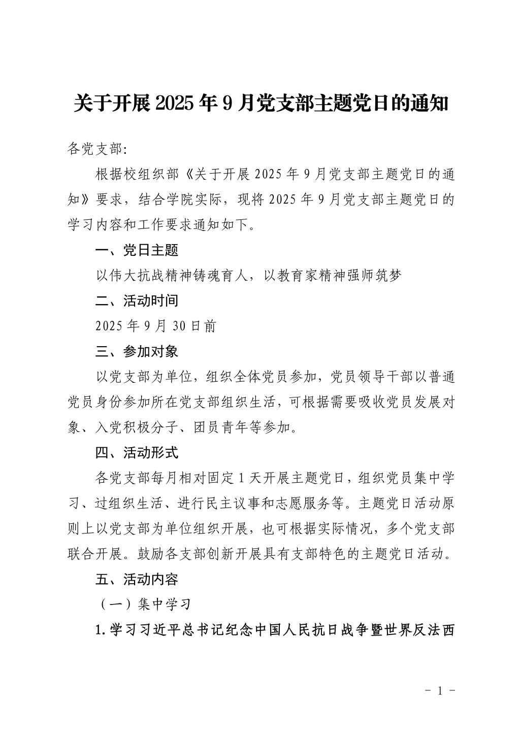 关于开展2025年9月党支部主题党日的通知