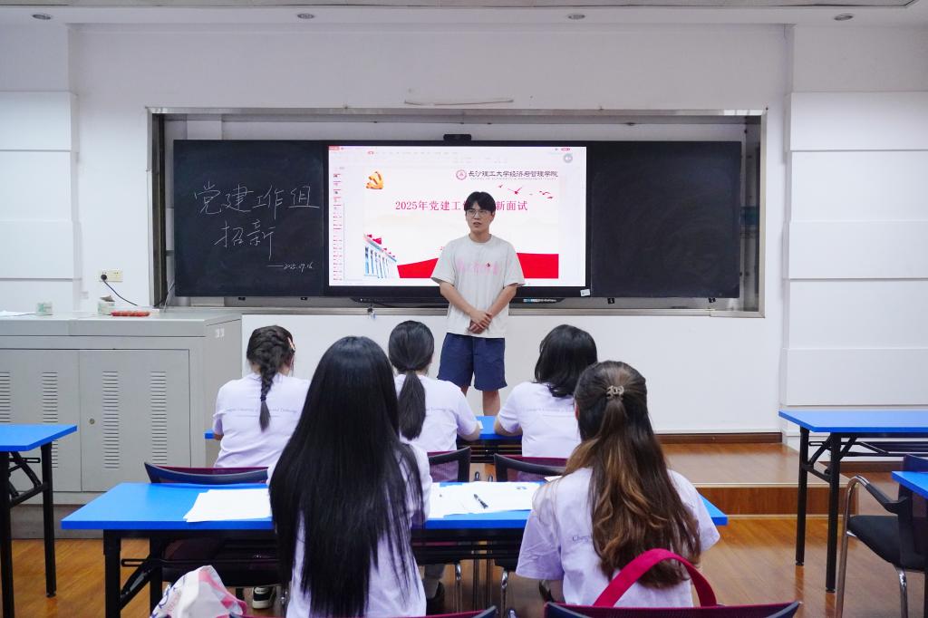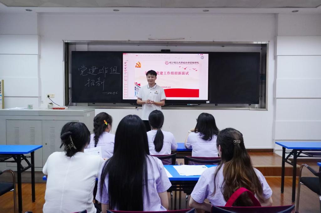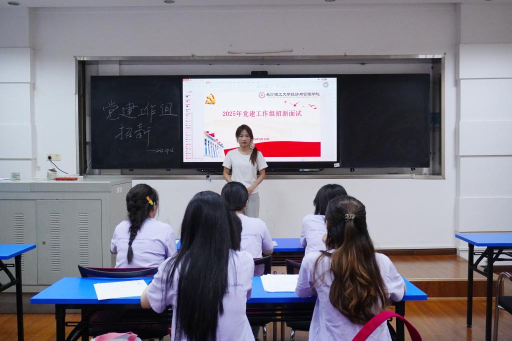 为加强学院党建工作队伍建设,选拔具备扎实能力的学生党员加入党建工作组,共同助力学院党建工作发展,经管学院于9月16日晚在金盆岭校区7教217教室开展25级研究生党建工作组招新面试。