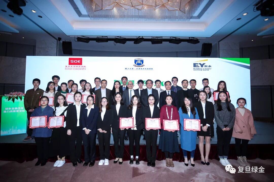 2018年11月24日,由复旦大学泛海国际金融学院及经济学院,安永华明会计事务所合作举办的复旦-安永中国大学生绿色金融大赛决赛,在上海陆家嘴中国金融信息中心隆重举行。经过激烈角逐,由我校经管学院5名研究生组成的飞跃队以《基于环境要素的碳金融市场风险的研究》(队长:2017级韩露露,队员:2018级黎蕾蕾、熊艳艳、刘世英和李典,指导教师:尹筑嘉)获得本届大赛二等奖。
