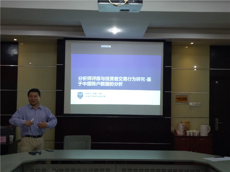 讲座第一阶段, 熊熊教授以天津大学国家自然科学基金重大项目团队最新研究成果“分析师评级与投资者交易行为研究-基于中国账户数据的分析”为起点,和与会者分享了金融大数据如何获取、文本信息的处理以及数据如何运用到研究中等研究环节,并报告了他们的研究结果。