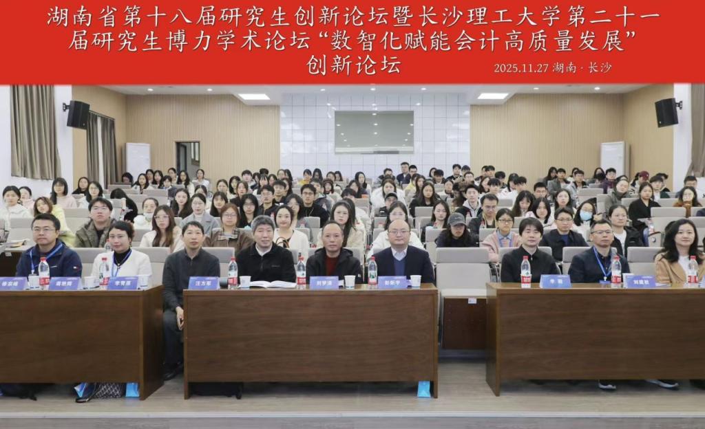 2025年11月27日,湖南省第十八届研究生创新论坛暨国产a视频免费观看不卡第二十一届研究生博力学术论坛“数智化赋能会计高质量发展”创新论坛在国产a视频免费观看不卡金盆岭校区隆重举行。本次论坛由湖南省教育厅主办,国产a视频免费观看不卡承办,来自国内各高校的专家学者以及国产a视频免费观看不卡师生近200人参加了本次论坛。
