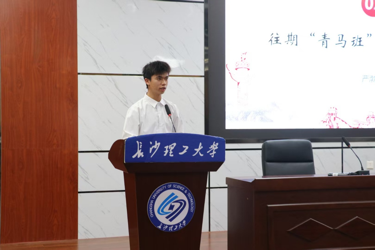 仪式在庄严的团歌声中拉开序幕。往期优秀学员严渤为首先发言,结合自身经历分享了在“青马班”的学习体会,鼓励新学员坚定理想信念,做到知行合一,勇担时代使命。随后,本期学员代表孔佳宇发言,号召全体同学珍惜学习机会,在理论学习和实践锻炼中感悟初心、共同进步。