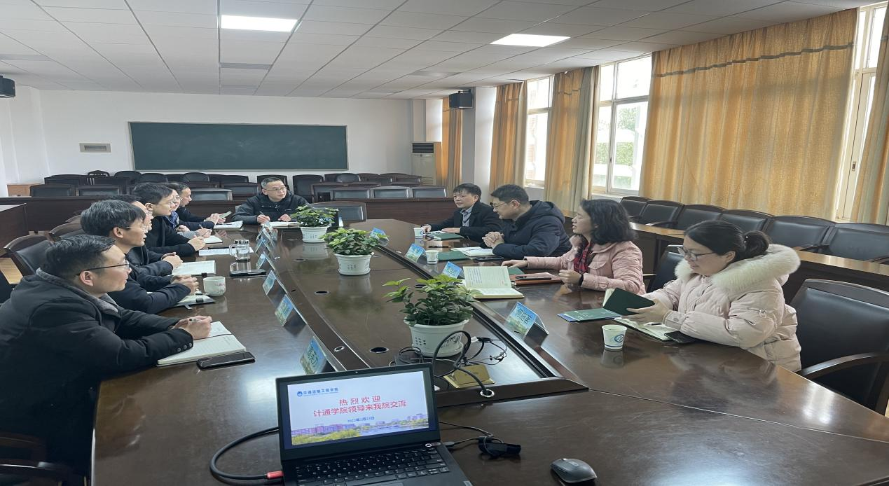 2月23日下午,计算机与通信工程学院(以下简称计通学院)与我院领导班子举行交流研讨会,计通学院党委书记孔伟红、院长张锦一行来我院交流研讨,学院党委书记刘朝辉、院长张军辉及在家院班子成员参加交流。