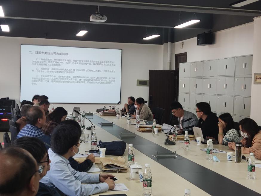 各专业的执行负责人分别介绍了实行大类招生与培养工作对本专业建设与发展的益处和工作开展中存在的不足,肯定了大类招生政策对招生生源以及就业等方面的推动作用,但存在学生归属感、师资匹配以及专业间培养模式的融合等方面的问题。各专业的教学主任就大类招生以来专业教学工作的变化以及专业分流对各专业生源的影响做了补充发言。