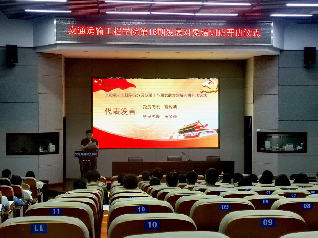 5月4日晚,交通学院分党校于工二交通科技报告厅举行第十八期发展对象培训班开班仪式,院党委副书记、分党校副校长涂道勇,分党校秘书肖敏强和第18期发展对象培训班全体学员参加。