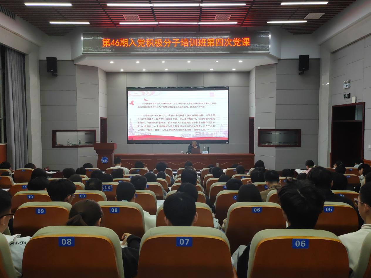 为强化入党积极分子的理论认知,筑牢思想根基,11月5日,交通学院第46期入党积极分子培训班第四堂课在工科二楼B301教室正式举行,培训班全体学员参加学习。本次课程特邀马克思主义学院余乃中教授担任主讲,围绕“一体推进教育、科技、人才事业发展”主题展开系统讲解。