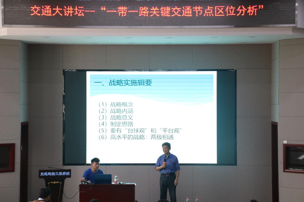 紧接着,管教授开始给我们讲解“一带一路”战略研究。战略实施辑要、意义、制定思路等等都大大丰富了我们对“一带一路”的认识,带给了我们许多启发。尤其是管教授提出的“变量”、“事物本质”、“慢变量”、“两极相通”等概念,尽管有些抽象,但却让同学们从一个新的维度对交通的本质、对一带一路有了新的认识。