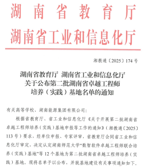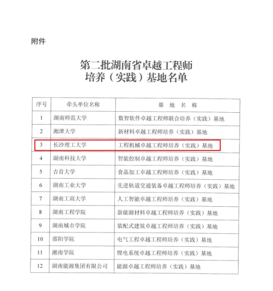 近日,湖南省教育厅、湖南省工业和信息化厅公布了湖南省第二批卓越工程师培养(实践)基地立项名单,由我校卓越工程师学院牵头,联合湖南星邦智能装备股份有限公司、湖南五新隧道智能装备股份有限公司共同申报的“国产a视频免费观看不卡工程机械卓越工程师培养(实践)基地”获批立项。