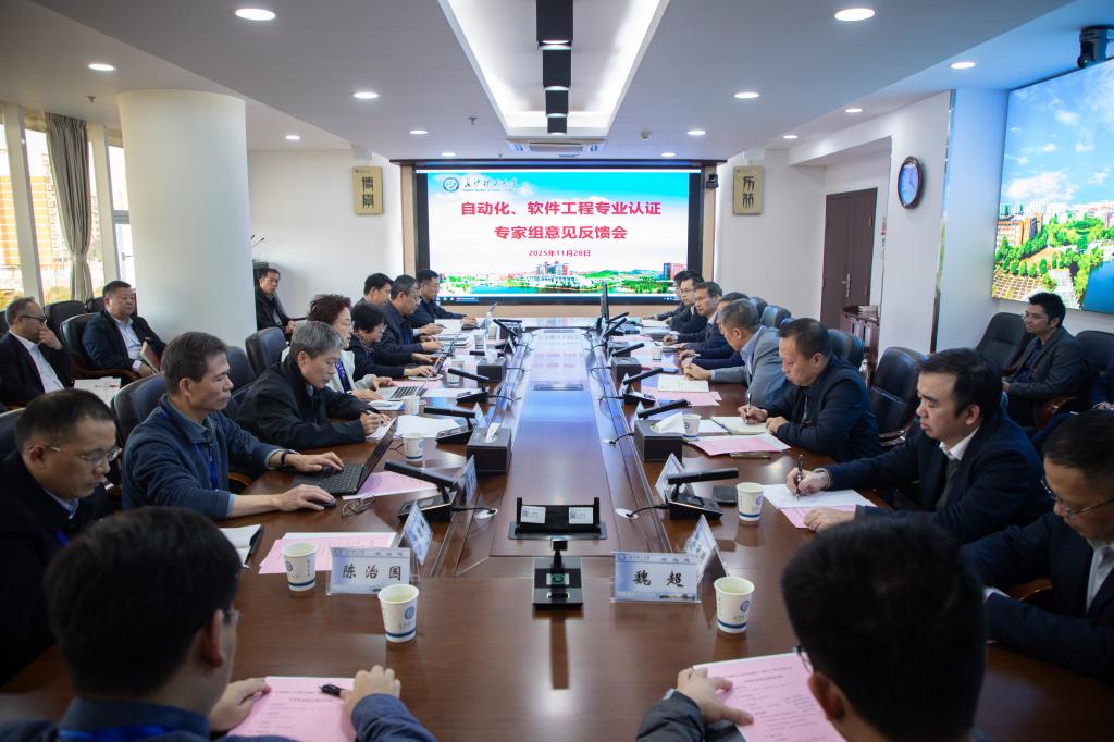 2025年11月26-28日,根据中国工程教育专业认证协会工作安排部署,我校自动化、软件工程专业开展专家组联合进校考查。由华东理工大学乐清华教授担任联合组长,南京理工大学吴晓蓓教授担任自动化组组长,沈阳航空航天大学张庆新教授、松下电器李庭弼教授、长春理工大学韩太林教授担任自动化组专家成员,北京科技大学王成耀教授担任软件工程组组长,北京希望电子出版社张晓卫教授、成都大学高朝邦教授担任软件工程组专家成员,南京信息工程大学陈治国、武汉理工大学魏超担任秘书,对我校自动化和软件工程专业开展了为期两天的现场考查。校党委委员、副校长王磊,相关职能部门负责人、相关学院负责人及专业教师代表,教务处科以上干部参加了见面会和反馈会。