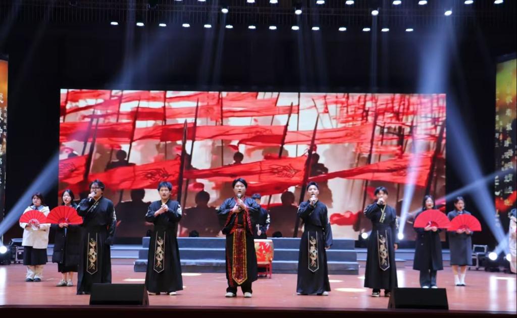 继教学子以饱满的热情、昂扬的姿态登上舞台。一声“三十功名尘与土,八千里路云和月”荡气回肠,带领观众穿越历史长河,感受壮志豪情;一句“梦里花开多鲜艳,梦里花开江红遍”融汇古今诗意,展现了对英雄精神的追忆与传承。朗诵层层推进,情感逐步升华——“谁道英雄无觅处?冲冠怒唱今犹在”、“当年送你一征辞别,这盛世已如你所愿”,既有对历史的深切回望,亦饱含对当今盛世的自豪讴歌。尾声“且听继教吟诵,踏破贺兰山阙”更以磅礴之势,展现了继教学子奋发向上、敢于拼搏的精神风貌,赢得现场阵阵掌声。