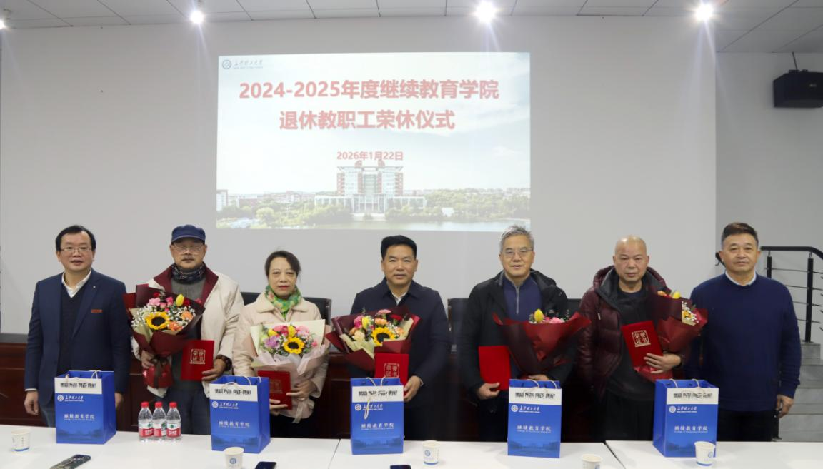 为弘扬尊师重教的优良传统,表彰退休教职工多年来对学院发展所作出的贡献,增强教职工的职业荣誉感与组织归属感,继续教育学院于2026年1月22日上午在14教118会议室举办2024-2025年度退休教职工荣休仪式,全体教职工及2024-2025年退休教职工参会。仪式由学院院长邹兴平主持。