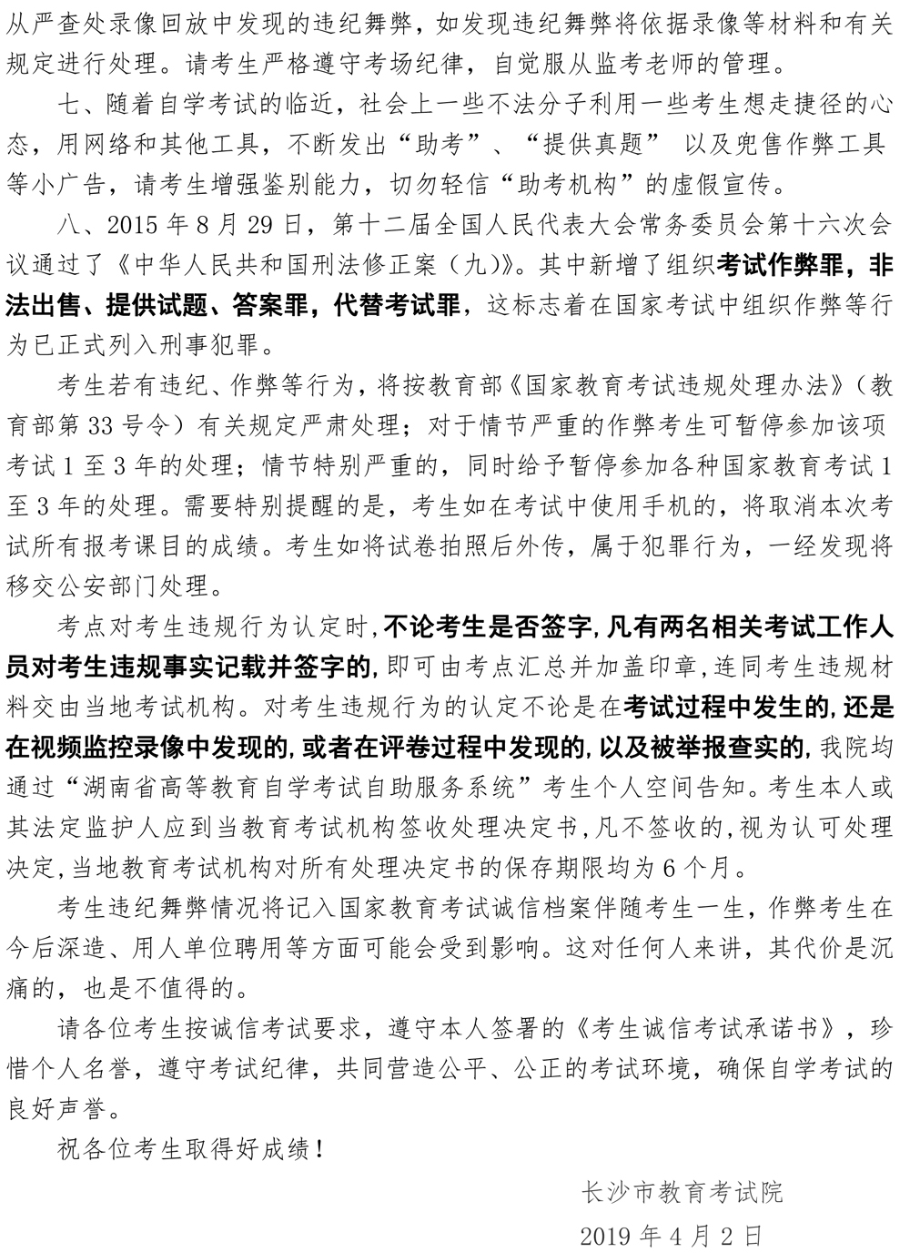 2019年4月自学考试温馨提示