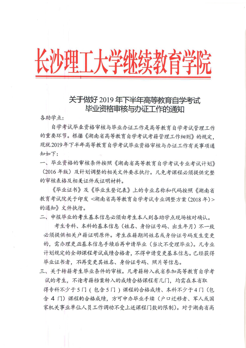 关于做好2019下半年高等教育自学考试毕业资格审查的工作通知