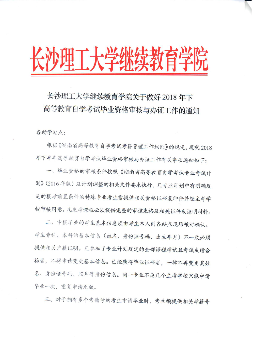 2018年下高等教育自学考试毕业证书资格审查的通知