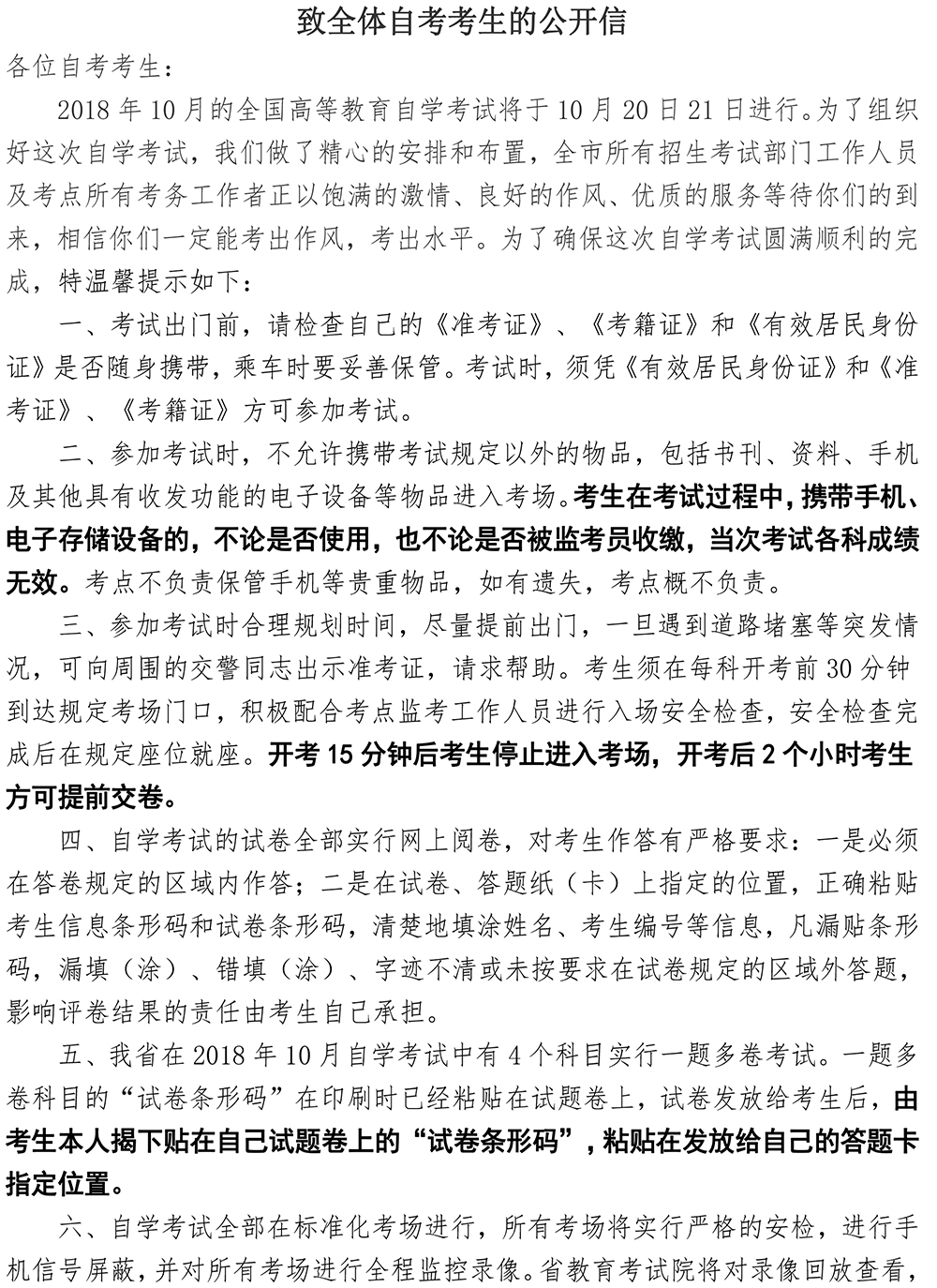 致全体自考考生的公开信