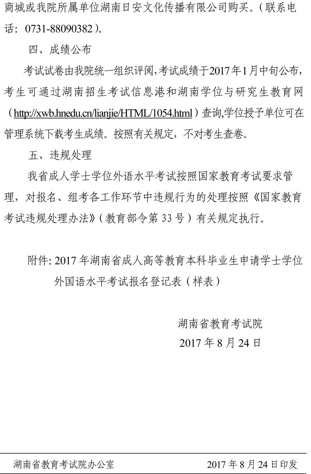 湖南省教育考试院关于我省2017年下半年成人高等教育学士学位外语水平考试报名工作的通知