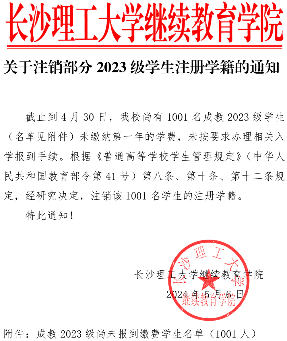 关于注销部分2023级学生注册学籍的通知