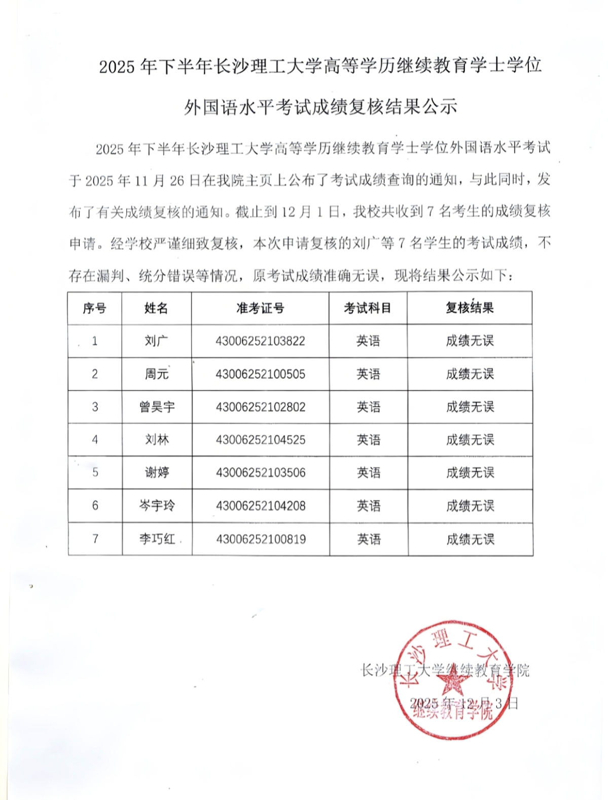 2025年下半年国产a视频免费观看不卡高等学历继续教育学士学位外国语水平考试成绩复核结果公示