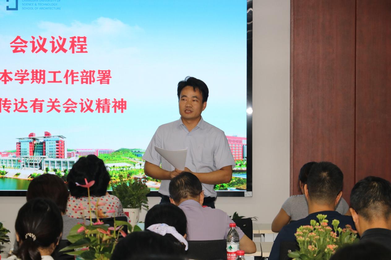 9月10日,建筑学院召开202年秋季学期教职工大会,全体教职工参会。会议由学院党委书记熊鹰主持,会议围绕本学期重点工作、学校相关会议精神及学院发展规划等内容展开部署与交流。
