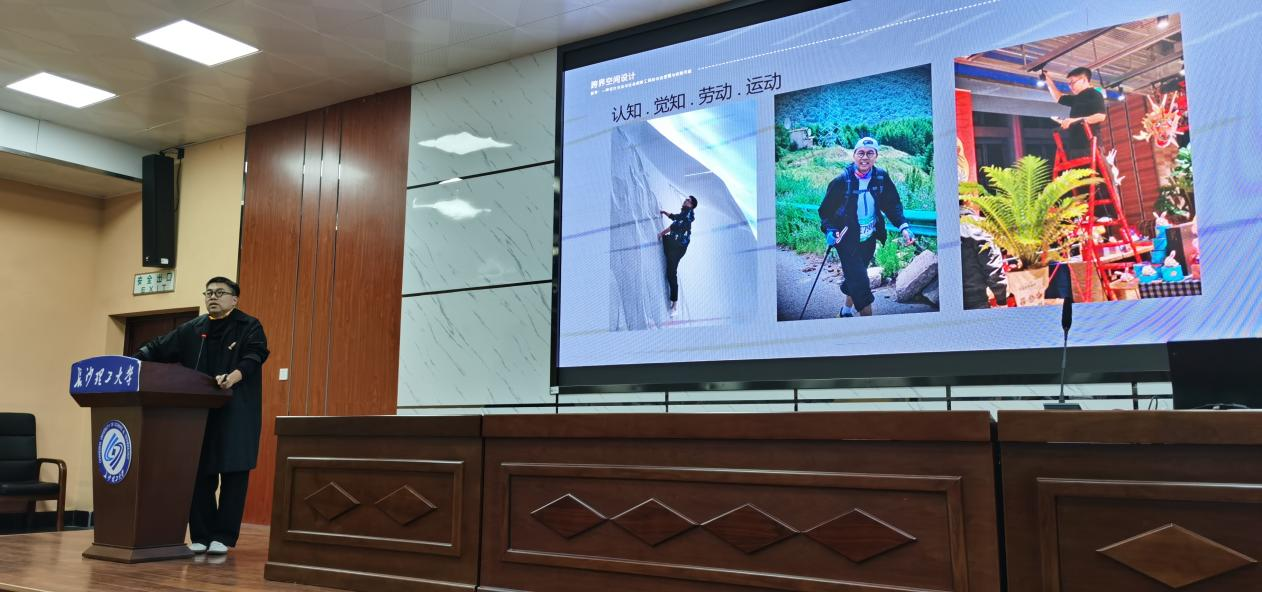 12月16日晚,都市花乡联合创始人、自由商业空间设计师张文在4号教学楼报告厅主讲“跨界空间设计”。作为天心区政协委员及活跃的文化设计实践者,张文在“阅读花园”“沐月溪茶书院”等项目中,以植物美学为媒介,探索文化文本、身体经验与商业功能的空间融合,形成独特的“场景化设计”理念。他通过案例剖析“跨界”在当代设计中的社会创新价值,探讨建筑与商业、文化、生态的互动关系。讲座由欧阳国辉教授主持,现场气氛热烈,启发学生从多学科视角理解设计的社会意义。