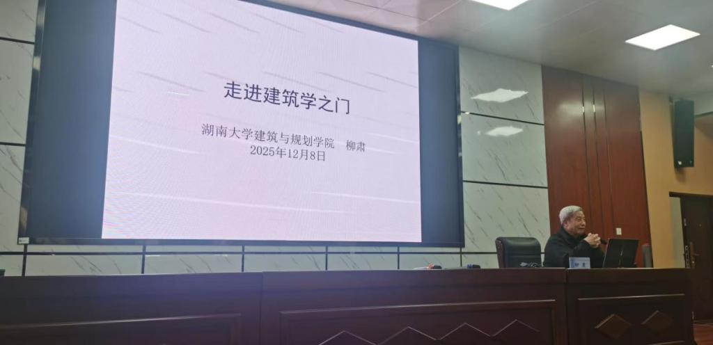 12月8日,湖南大学建筑与规划学院教授、博士生导师柳肃在4号教学楼报告厅带来“走进建筑学之门”专题讲座。