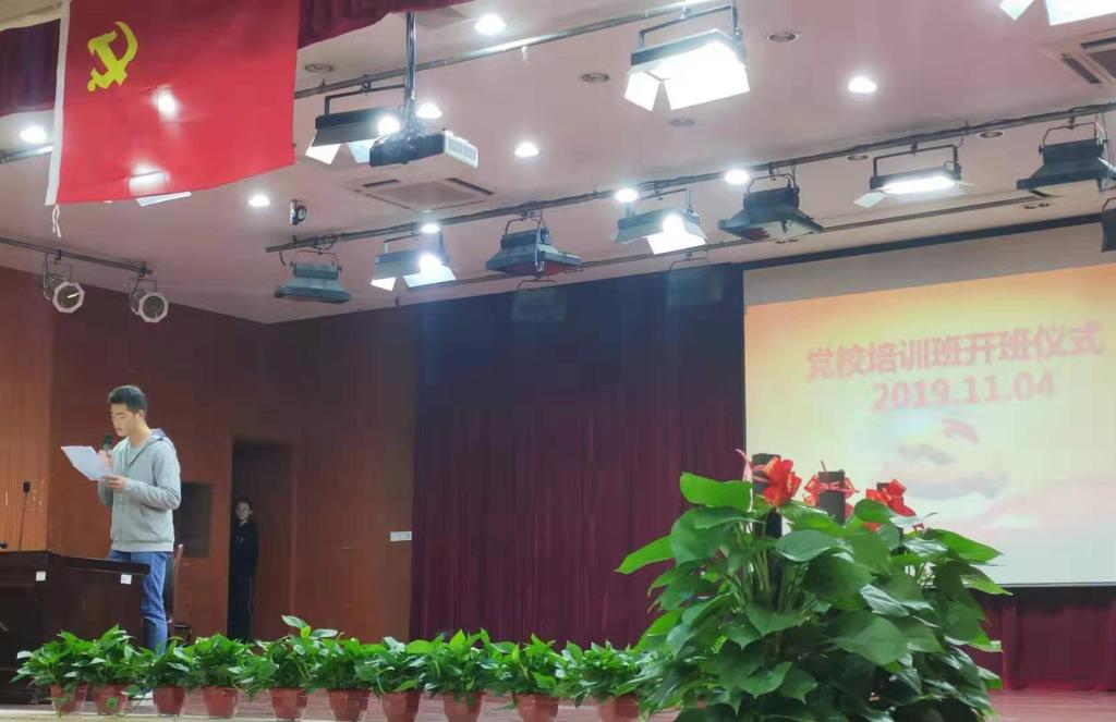 在庄严雄壮的国歌中,开班仪式拉开序幕。文法学院法学党支部李煊苇同学宣读党校课程安排和纪律要求。开班仪式第三个环节,三个学院的积极分子代表分别上台发言,三位代表都表达了向组织靠拢的强烈意愿,强调了培训的重要性,并与在座的各位同学互相勉励,学员们报以持续热烈的掌声。随后,文法学院法学党支部吴晓雨同学上台带领大家一起宣誓。最后,开班仪式以全体奏唱国际歌结束。