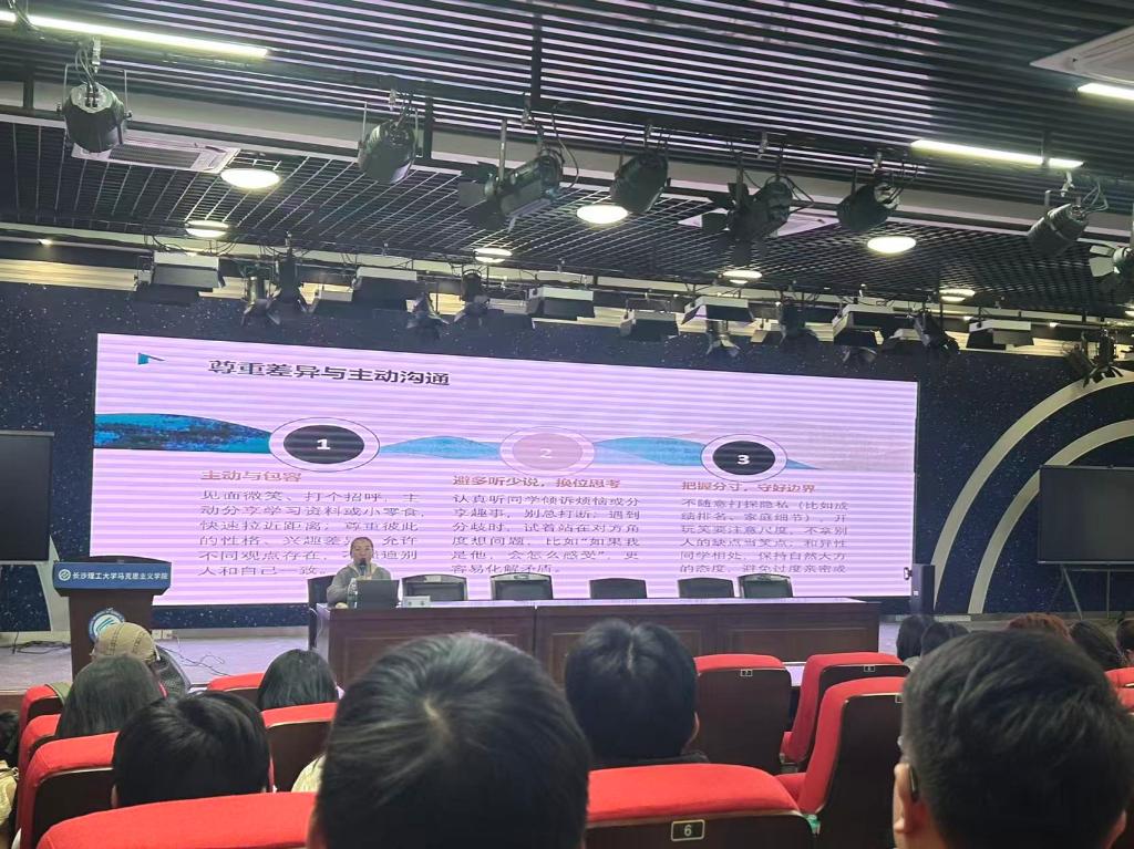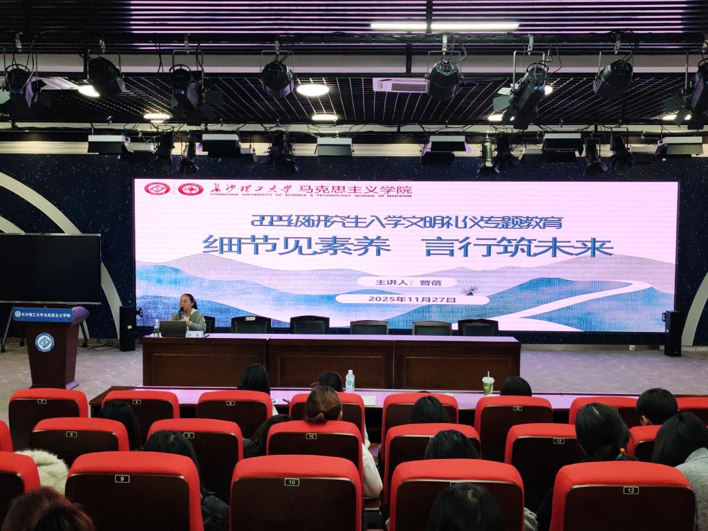 2025年12月27日下午4:30,国产a视频免费观看不卡马克思主义学院在云塘校区文科楼B300报告厅开展2025级研究生入学文明礼仪专题教育。本次活动由马克思主义学院学工办主任曾蓓担任主讲,2025级全体研究生参加。