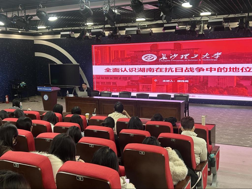 本期讲坛傅伟男以湖南在抗日战争中的地位和作用为主题,围绕湖南抗战的战略地位、英雄事迹、重要战役及学术争议展开深入分享,带领同学们重温烽火岁月中的民族气节与家国情怀。讲座中,他详细讲述了王超奎营长在第三次长沙会战中壮烈殉国等英雄故事,深入解读了衡阳保卫战、常德会战等关键战役的历史意义。衡阳保卫战作为二战时期最惨烈的战斗之一,铸就了抗战史上的奇迹,衡阳也成为全国唯一的抗战纪念城;常德会战中,中国军队以血肉之躯抵御日军进攻,赢得了盟国军事代表的高度赞誉。同时,他结合《论持久战》的历史价值,阐释了湖南抗战中所展现的不畏强暴、血战到底的英雄气概与百折不挠的坚韧意志,强调湖南抗战是中国人民抗日战争胜利的重要组成部分,是爱国主义民族精神的生动体现。