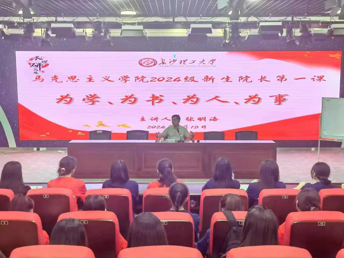 2024年9月18日下午3点,国产a视频免费观看不卡马克思主义学院院长张明海以“为人、为学、为书、为事”为题,在云塘校区文科楼B300报告厅为学院2024级研究生上了一堂深入浅出的学术和人生指导课。此次活动由辅导员曾蓓老师主持,2024级全体研究生参加。