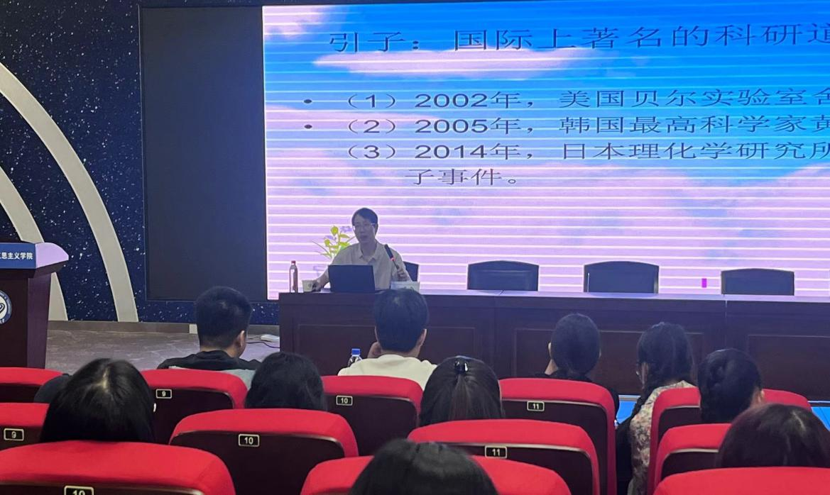 2024年9月19日上午11时,马克思主义学院在云塘校区文科楼B300报告厅召开“科学道德与学术规范”专题讲座。此次活动旨在加强2024级研究生新生的科研道德意识,提升他们对学术规范的认知与遵守能力,本次活动由学生工作办公室主任曾蓓老师主持,副院长文贵全主讲,2024级全体研究生参加。