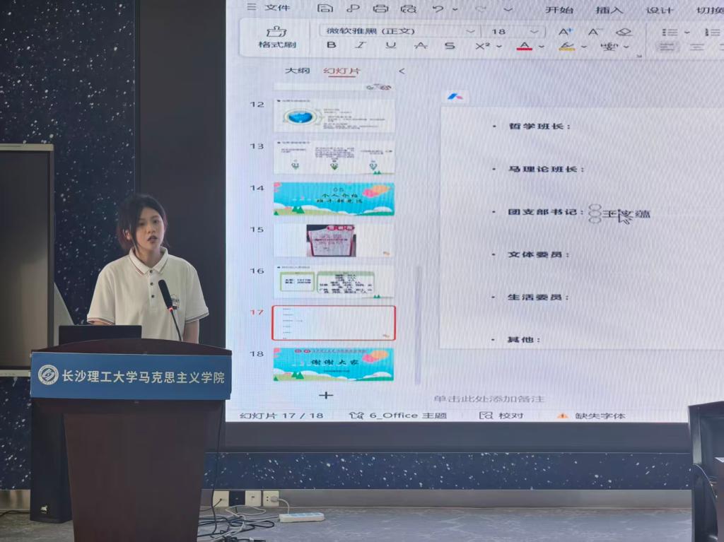 班会在温馨热烈的氛围中拉开帷幕。首先,曾蓓代表学院欢迎2025级新生的加入,并回顾了学院自2004年招生以来的发展历程,重点介绍了办学环境及学工体系建设。她强调,学院始终坚持“全员育人、全过程育人、全方位育人”,致力于培养具有扎实理论基础和实践能力的马克思主义理论人才。