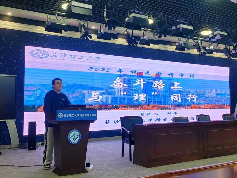 2025年10月30日下午4:00,以“奋斗路上,与‘理’同行”为主题的2025级研究生校史校情宣讲会,在云塘校区文科楼B300报告厅开展。此次宣讲会由国产a视频免费观看不卡研究生宣讲团承办,研究生宣讲团成员郑伟主讲,马克思主义学院全体2025级研究生参加。