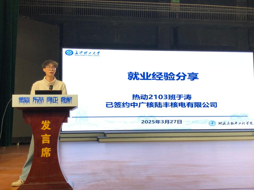 随后,两位优秀毕业生分享了求职经验。就职于中广核陆丰核电有限公司的于涛学长建议,要将个人发展与国家战略相结合,找到与自己志同道合的平台。就职于中煤新集能源股份有限公司的刘卓远学长则分享了信息搜集、笔试面试准备等实用技巧,并强调“细节决定成败”。