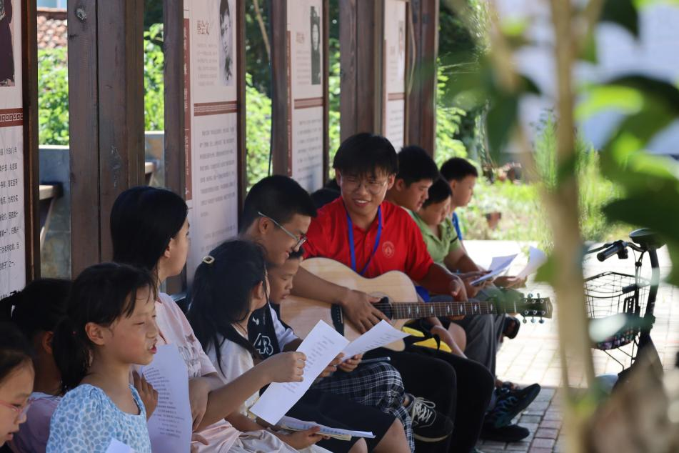 清风廊内,吉他声伴着稚嫩的歌声悠扬飘荡。音乐班的孩子在禹泓宇的带领下,化身为“小小合唱团”。他们学习乐理知识,练习发声技巧,共同演唱着精心挑选的歌曲——《夜空中最亮的星》。