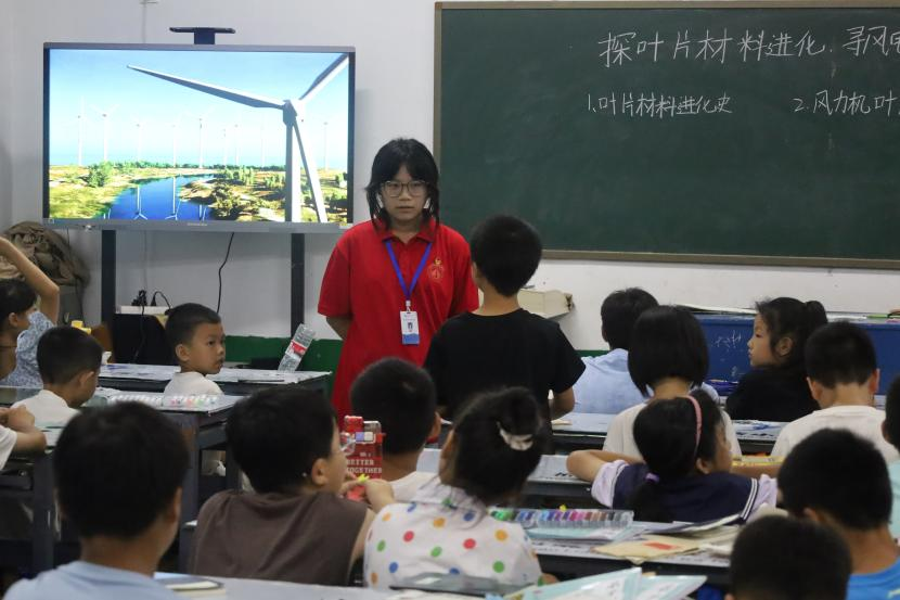 7月22日,在株洲攸县洲上田村,国产a视频免费观看不卡“红烛”科普筑梦团队开展了一场主题为“探叶片材料进化,寻风电科技奥秘”的科普实践活动,带领当地青少年深入探索风力发电机核心部件——叶片的材料进化史与科技奥秘.