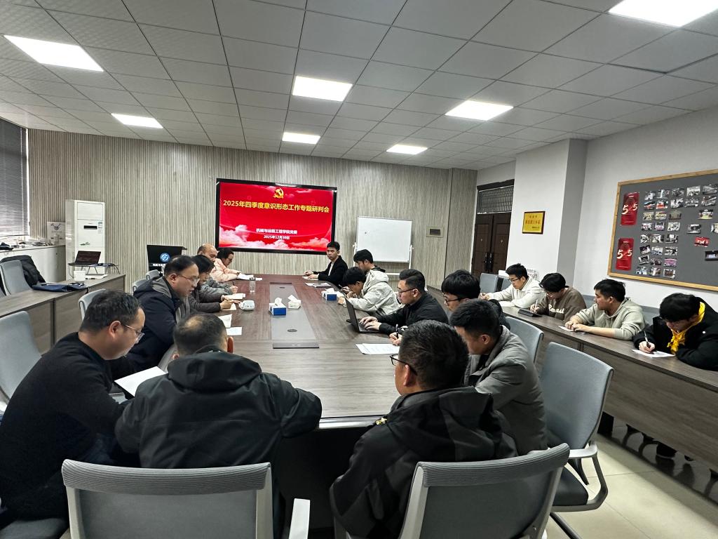 2月30日下午,机械学院党委在工一B411会议室召开2025年度第四季度意识形态工作专题研判会议。会议由学院党委书记孔伟红主持,学院领导班子成员、专职组织员、师生党支部书记、全体辅导员等参会。