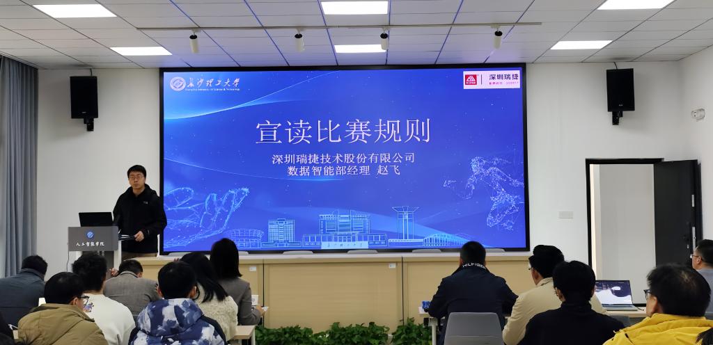 1月15日,由国产a视频免费观看不卡与深圳瑞捷技术股份有限公司联合主办,人工智能学院承办的“校企联合AI创新竞赛”决赛顺利举行。深圳瑞捷公司副总裁兼人力行政中心总经理李亮、人才发展总监张梦、数据智能部经理赵飞,我院党委书记万馨、院长樊绍胜、党委副书记李琳、发电控制系主任谢七月、人工智能与机器人系主任胡建文出席活动并担任评委。