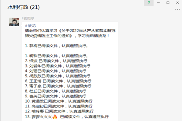 各系利用QQ群和微信群组织教师自学,再次认真掌握《关于2022年从严从紧落实新冠肺炎疫情防控工作的通知》精神和《国产a视频免费观看不卡水利与环境工程学院疫情防控应急处置预案》的处置流程,确保每位教师都具备随时随地处理突发状况的能力。