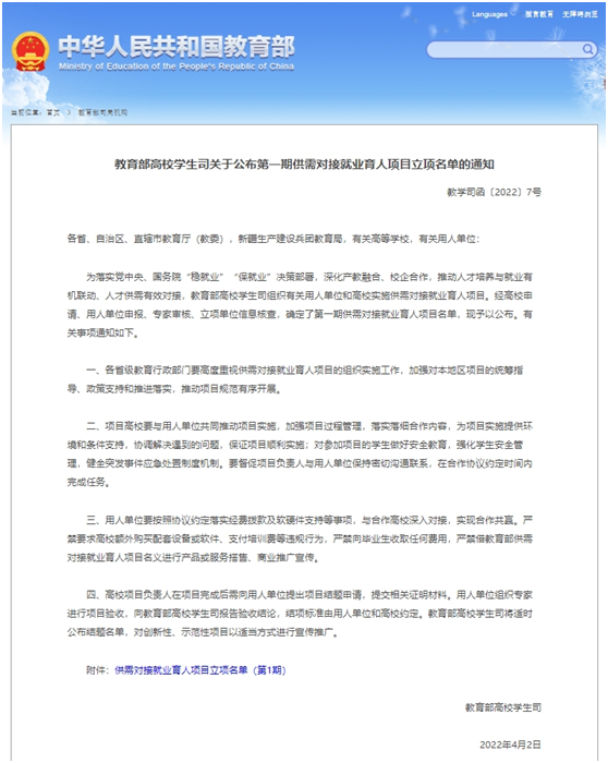 近日,教育部高校学生司下发《教育部高校学生司关于公布第一期供需对接就业育人项目立项名单的通知》(教学司函〔2022〕7号)文件,公布了全国第一期供需对接就业育人项目名单,我院孙士权副教授牵头主持的《北控水务集团—国产a视频免费观看不卡智慧水务就业实习基地项目》(编号:20220105880)成功获批。