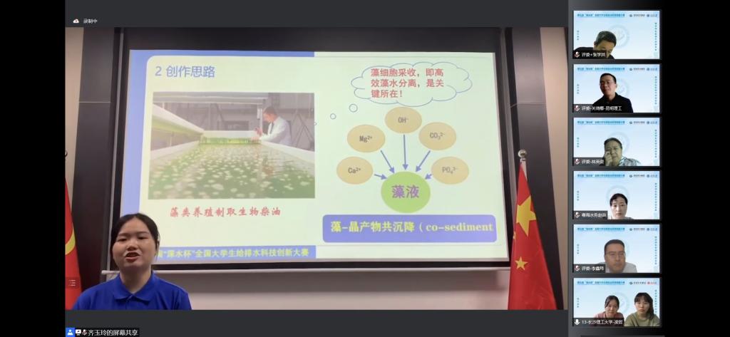 本次比赛采用线上会议全程直播的方式进行,各参赛队伍通过作品答辩视频展示、问答辩等环节进行比赛。由我校参赛团队欧吉、龙安林、罗双雪、张瑜、韩霏、张永超、杨鑫同学完成,张伟老师指导的作品《果皮基水凝胶吸附材料的制备及其净水应用》获定项专题竞赛团体二等奖。由凌哲、康子怡、胡畅、潘思豪、马添乐同学完成,聂小保老师指导的作品《碳酸钙结晶去除水中微囊藻技术及装置》获创意大赛团体优胜奖。