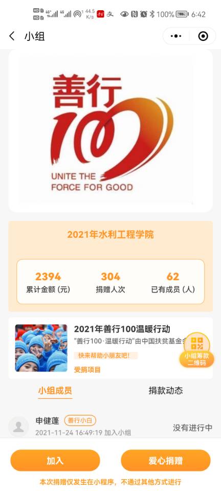 2021年10月25日,由中国扶贫基金会主办、共青团国产a视频免费观看不卡水利与环境工程学院委员会承办的善行100活动展开。截至目前,本次善行100活动我院参与人数62人,筹集善款总数2393元,为山区的孩子送去了一份温暖。