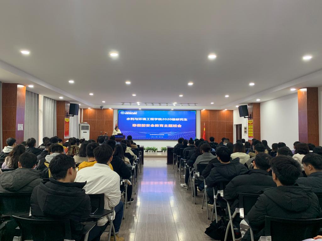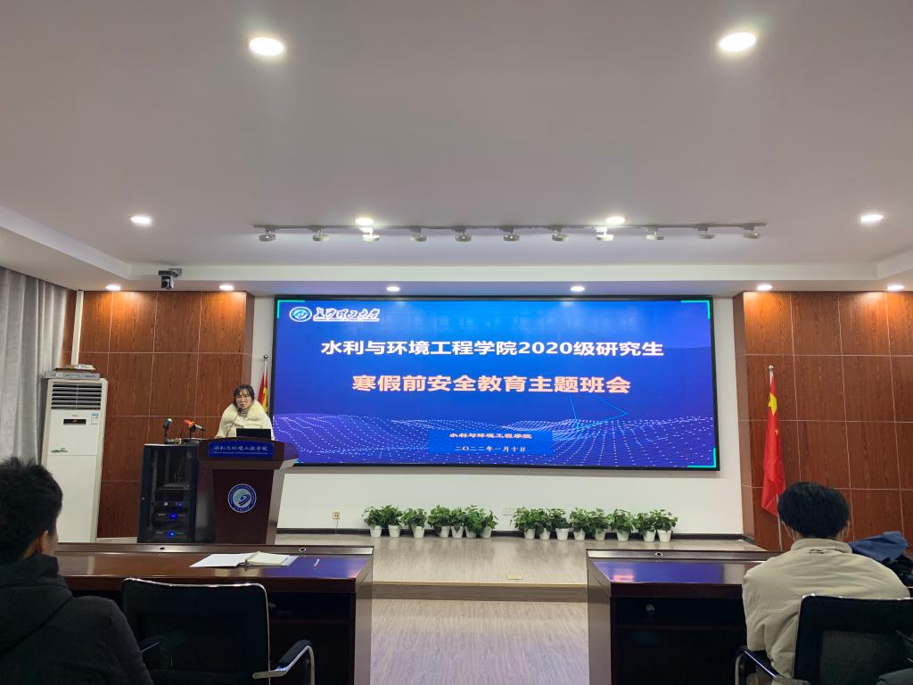 寒假临近,为加强疫情防控与安全教育、严肃考风考纪,2022年1月7日和10日,水利与环境工程学院研究生分别在金盆岭校区12教300和云塘校区工三B319召开研究生寒假离校安全教育主题班会。此次班会采用线下与线上相结合的形式进行,水利与环境工程学院辅导员杜丘及全体研究生参加,会议由班长主持。