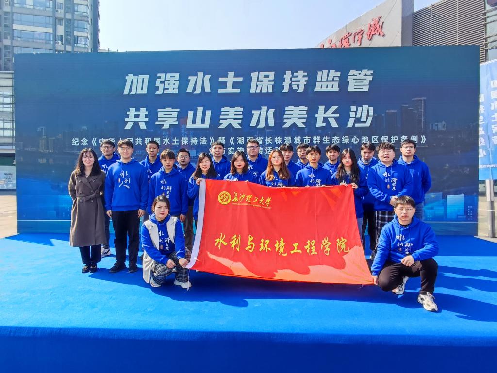为纪念《中华人民共和国水土保持法》修订实施11周年暨《湖南省长株潭城市群生态绿心地区保护条例》颁布实施9周年,2022年3月2日上午,水利与环境工程学院20余名大学生代表参加了在天心区环宇城举行的“加强水土保持监管,共享山美水美长沙”—《中华人民共和国水土保持法》和《湖南省长株潭城市生态绿心地区保护条例》普法宣传活动。大禹之子青年志愿者协会陈炫达作为社会监督员代表进行现场发言。活动由长沙市水利局主办、天心区农业农村局承办、长沙市水务综合执法支队协办。