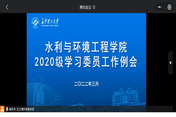 为进一步加强学风建设,促进形成良好学风,2022年3月17日水利学院召开2020级学习委员线上工作例会,会议由年级辅导员王正博主持,2020级全体学习委员和年级分会学习部成员到场参会。