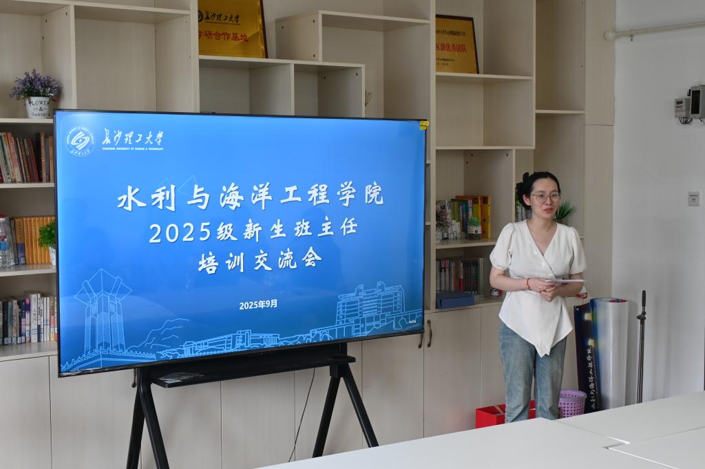 为提升新生班主任工作能力,确保迎新及后续班级管理工作顺利开展,9月9日水利学院在新能源一栋团体辅导室召开了2025级新生班主任培训会。学工办杜丘、王正博、王祎以及全体新生班主任参会,会议由王祎主持。