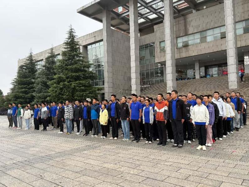 2025年10月13日,水利学院在云塘校区图书馆前坪举行2025-2026学年第一次升旗仪式。参加本次升旗仪式的有学院党委副书记银波,25级辅导员王祎、王正博,23级辅导员张海林,国旗班成员以及2025级338名学生。