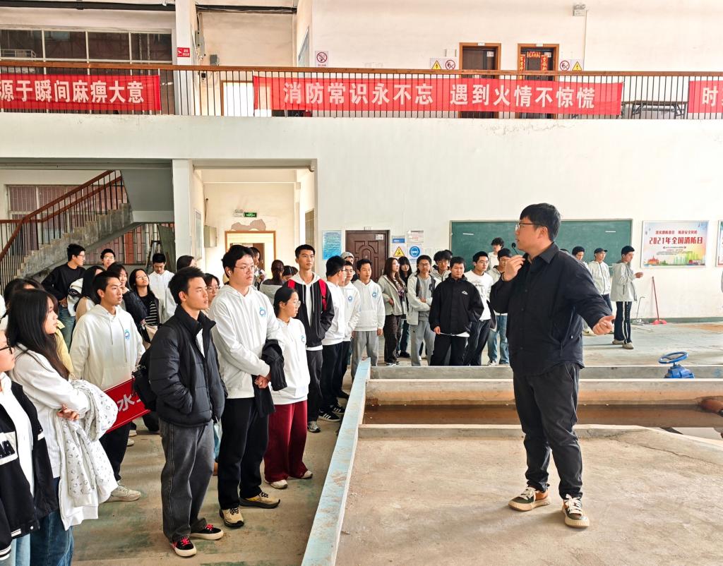 在水利实验中心,施奇佳老师系统介绍了实验中心的基本概况和工程实验的基础理论。他带领同学们依次参观了各专业方向的实验分室,详细讲解了各类实验设备的功能和使用方法。参观学习结束后港航创新班黎鑫说:“以前觉得理论知识可能有些抽象,但今天看到这些设备如何模拟真实的水环境、验证工程设计的可行性,让我深刻体会到扎实的专业基础和动手实践能力是多么重要。”