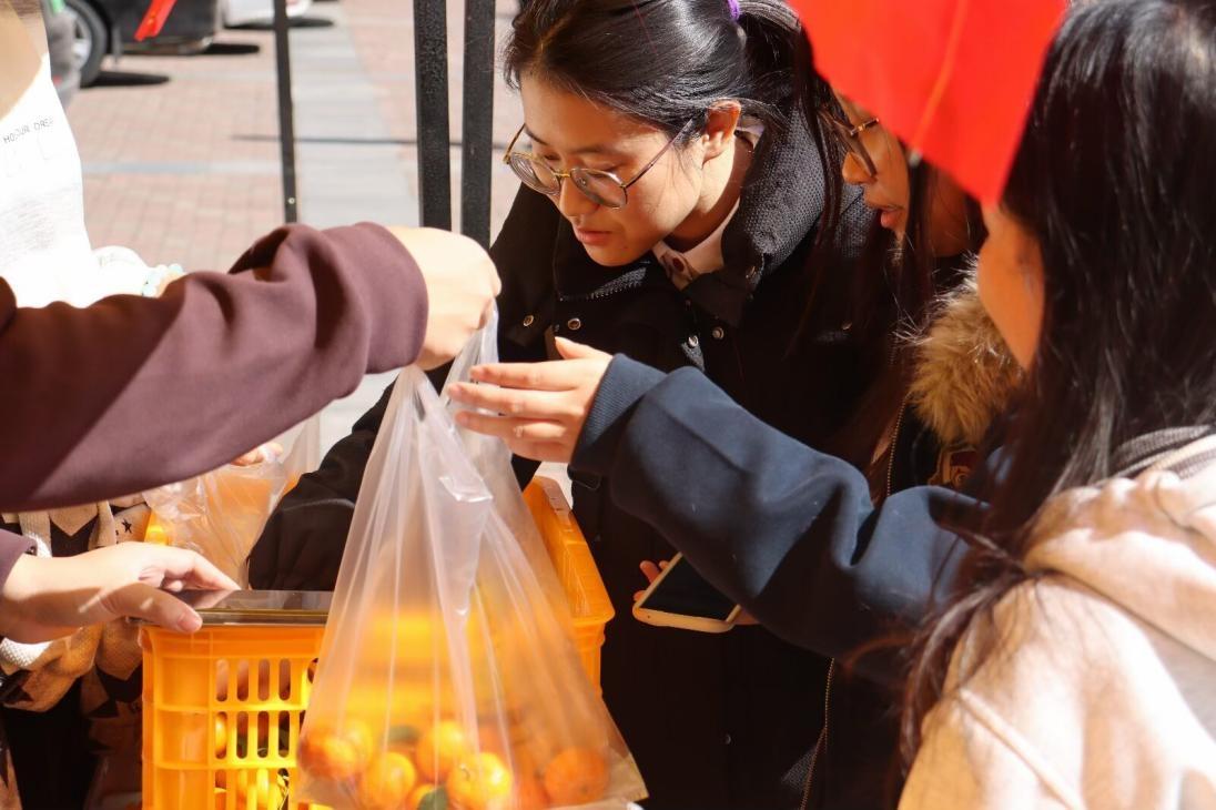 本次活动亮点纷呈,水利学子充分发挥创新精神,推出“买橘子送美甲”“幸运大抽奖”等特色活动,将传统农产品销售与现代营销模式有机融合。这种新颖模式不仅有效提升了砂糖橘销量,更在轻松互动中营造了全员参与乡村振兴的浓厚氛围。“既能买到新鲜的助农产品,又能体验到同学们的创意服务,感觉特别有意义!”一位正在参与活动的同学笑着说。售卖现场气氛热烈,师生纷纷踊跃选购,以实际行动支持助农事业。