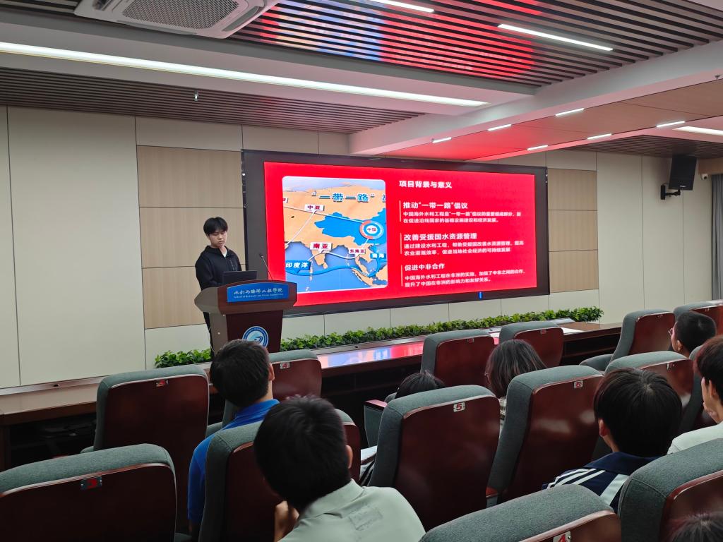在随后的交流分享环节,同学们积极发言,水文特岗2301班蔡琰琳认为,中国援建项目是“共商共建共享”理念的生动实践,水利学子应主动将个人理想融入国家发展大局;港卓2301班卢阳林提到,中国企业在项目建设中注重生态保护,帮助当地居民走出“竭泽而渔”的传统发展模式,推动可持续发展。